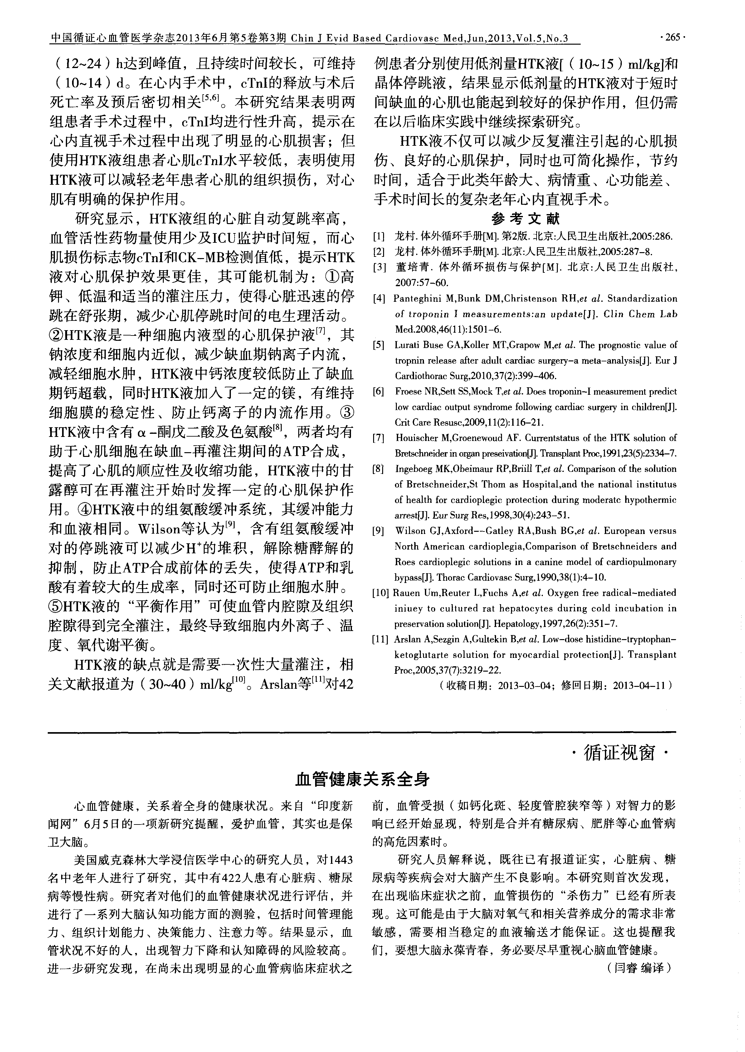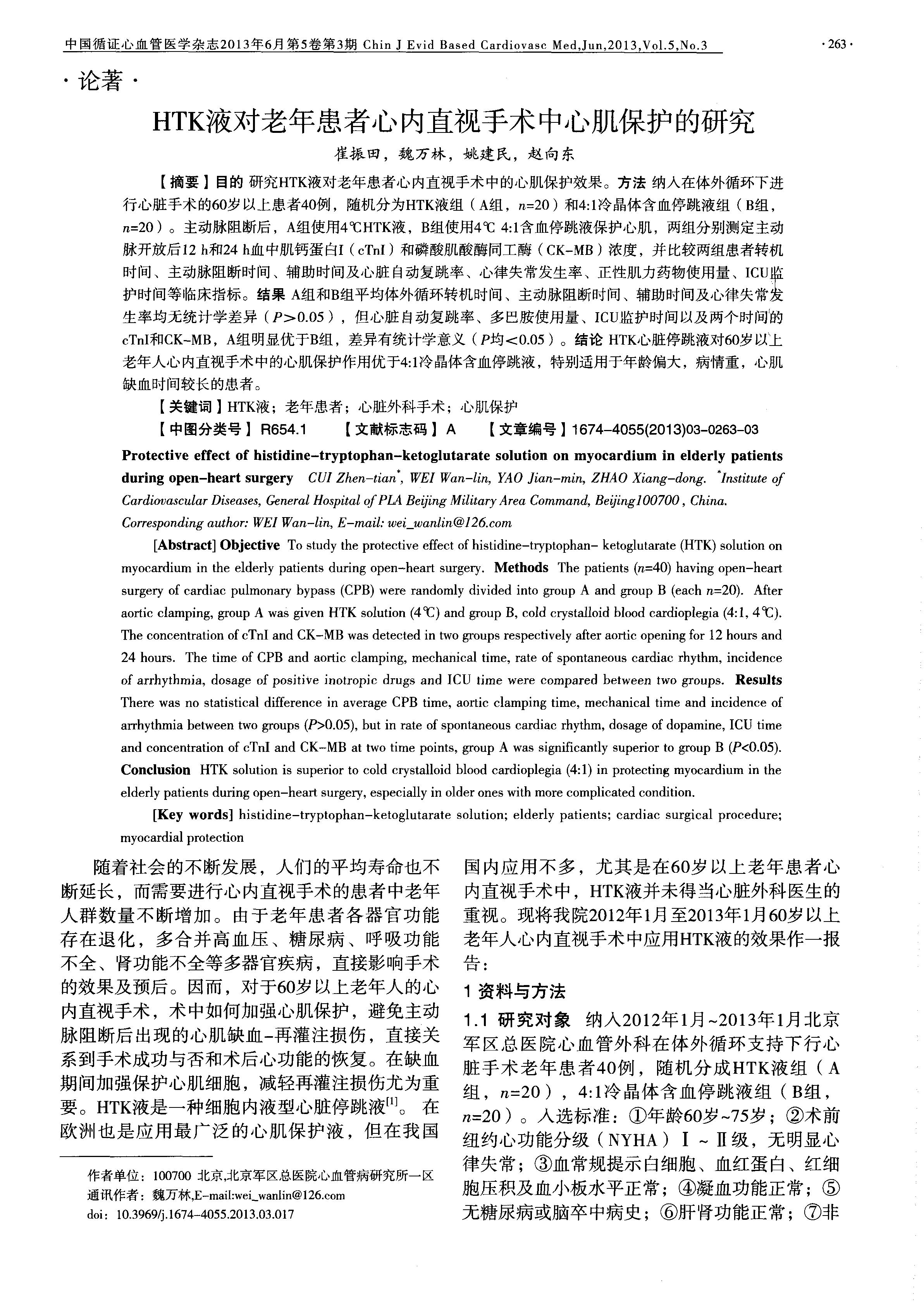 【效果及安全性专题】HTK液对老年患者心内直视手术中心肌保护的研究