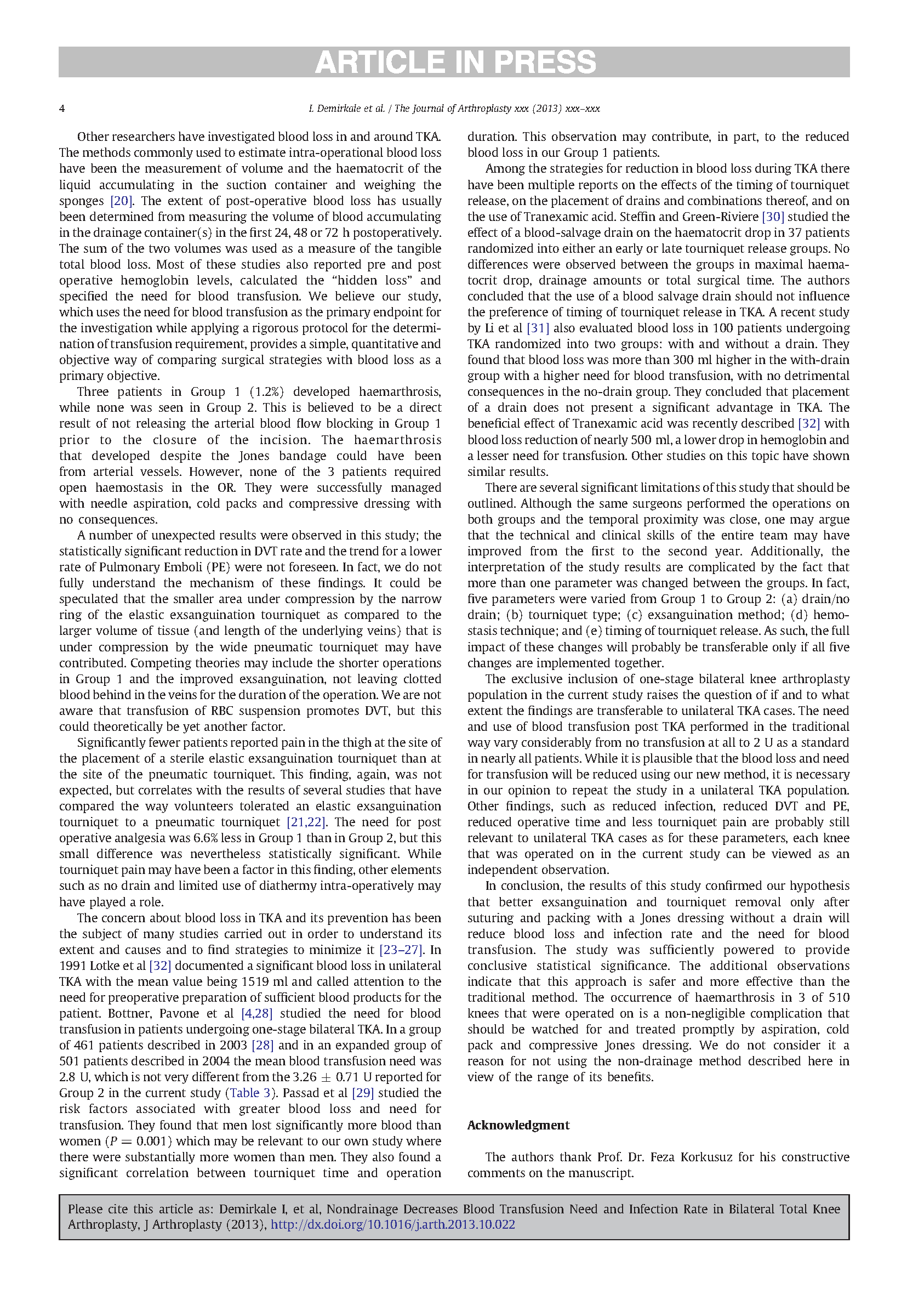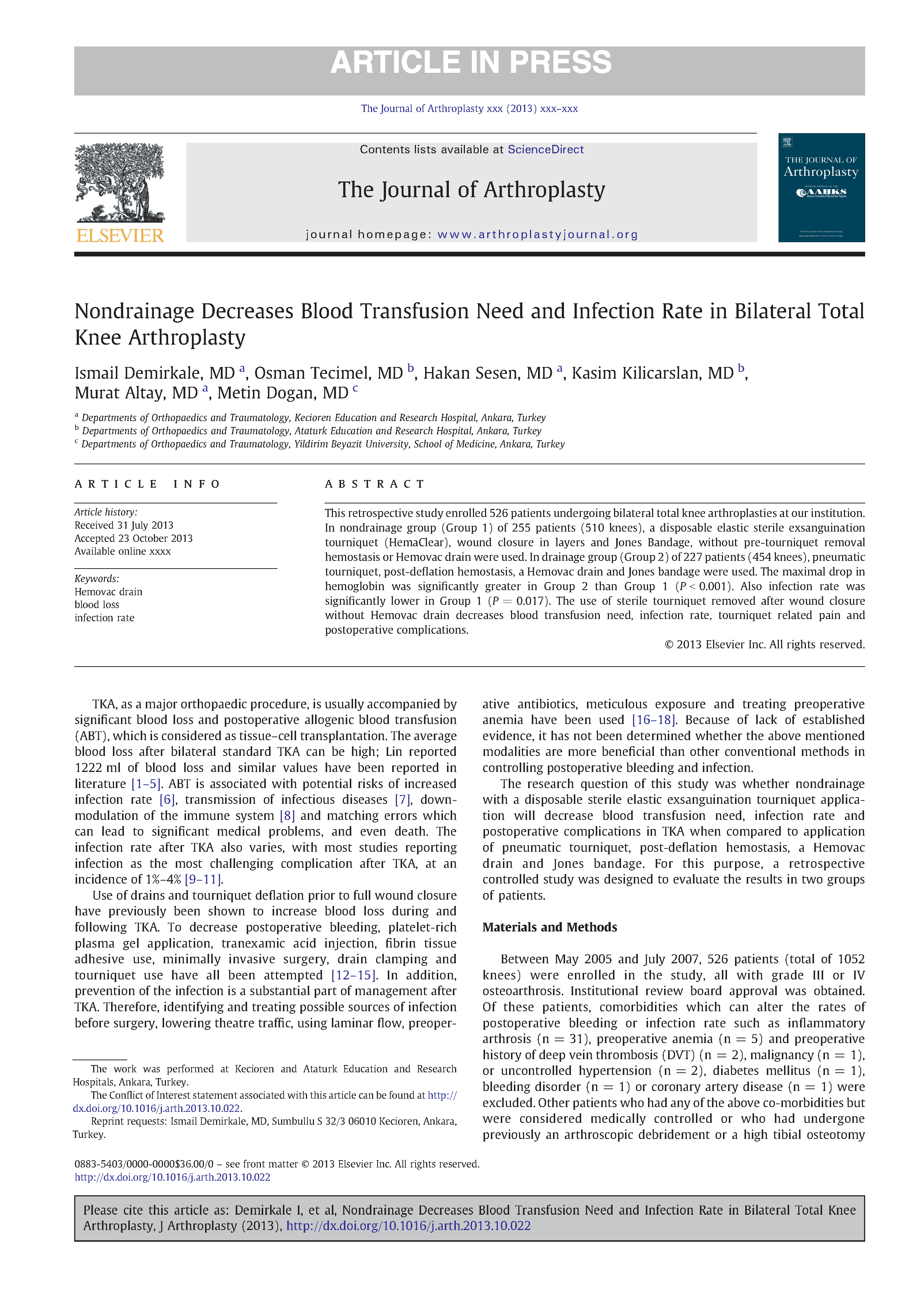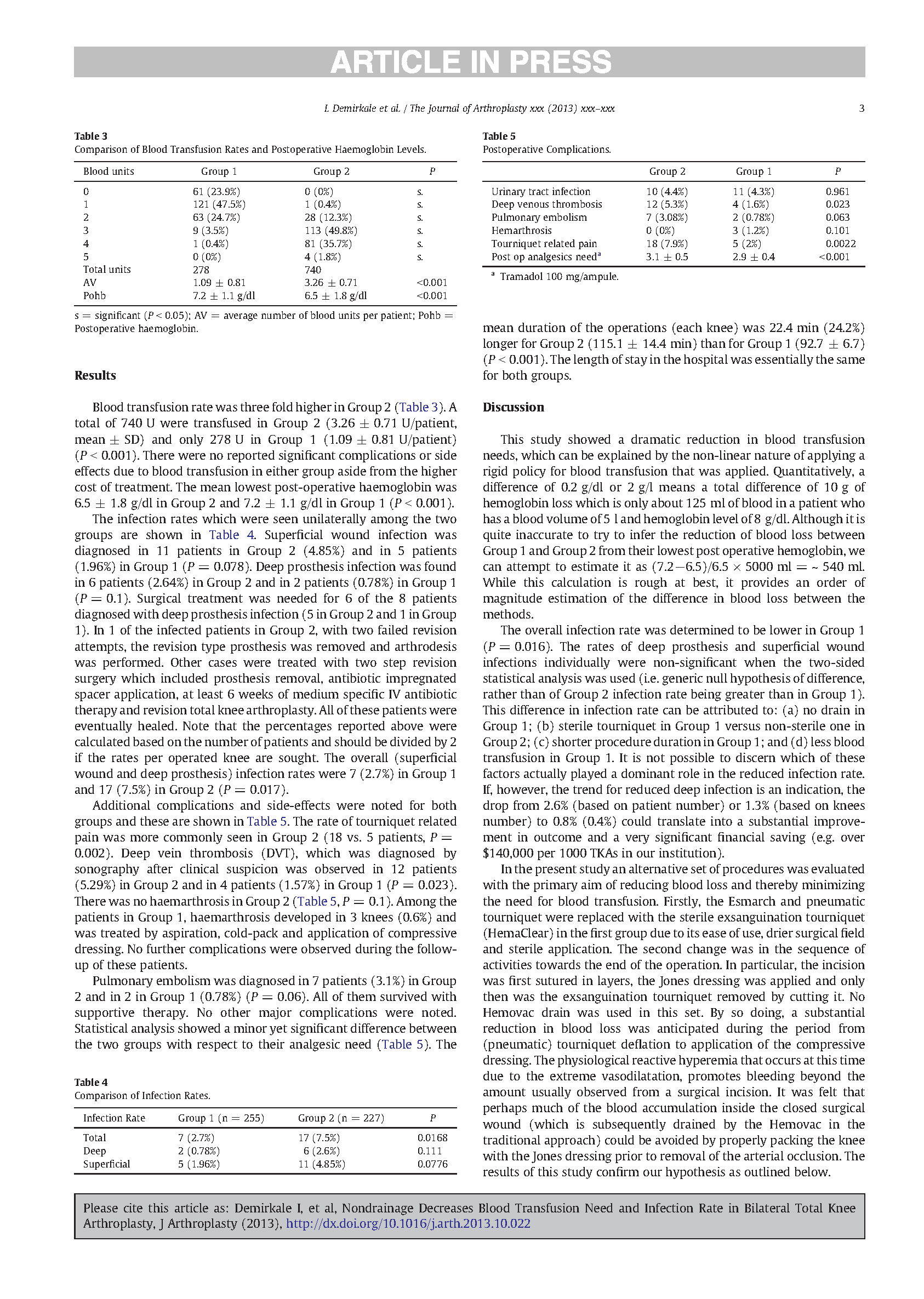 TKA作为主要的骨科手术,通常伴有显著的失血和术后同种异体输血(ABT),这被认为是组织细胞移植。双侧全膝关节置换术后标准平均出血量可以很高;林报道了1222毫升失血量,并且相似的观点在文献中已有报道。