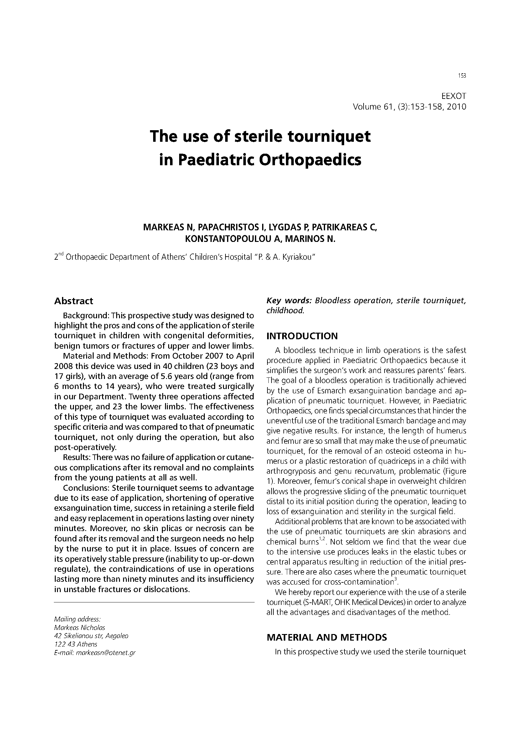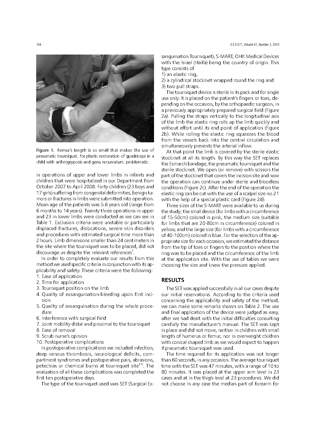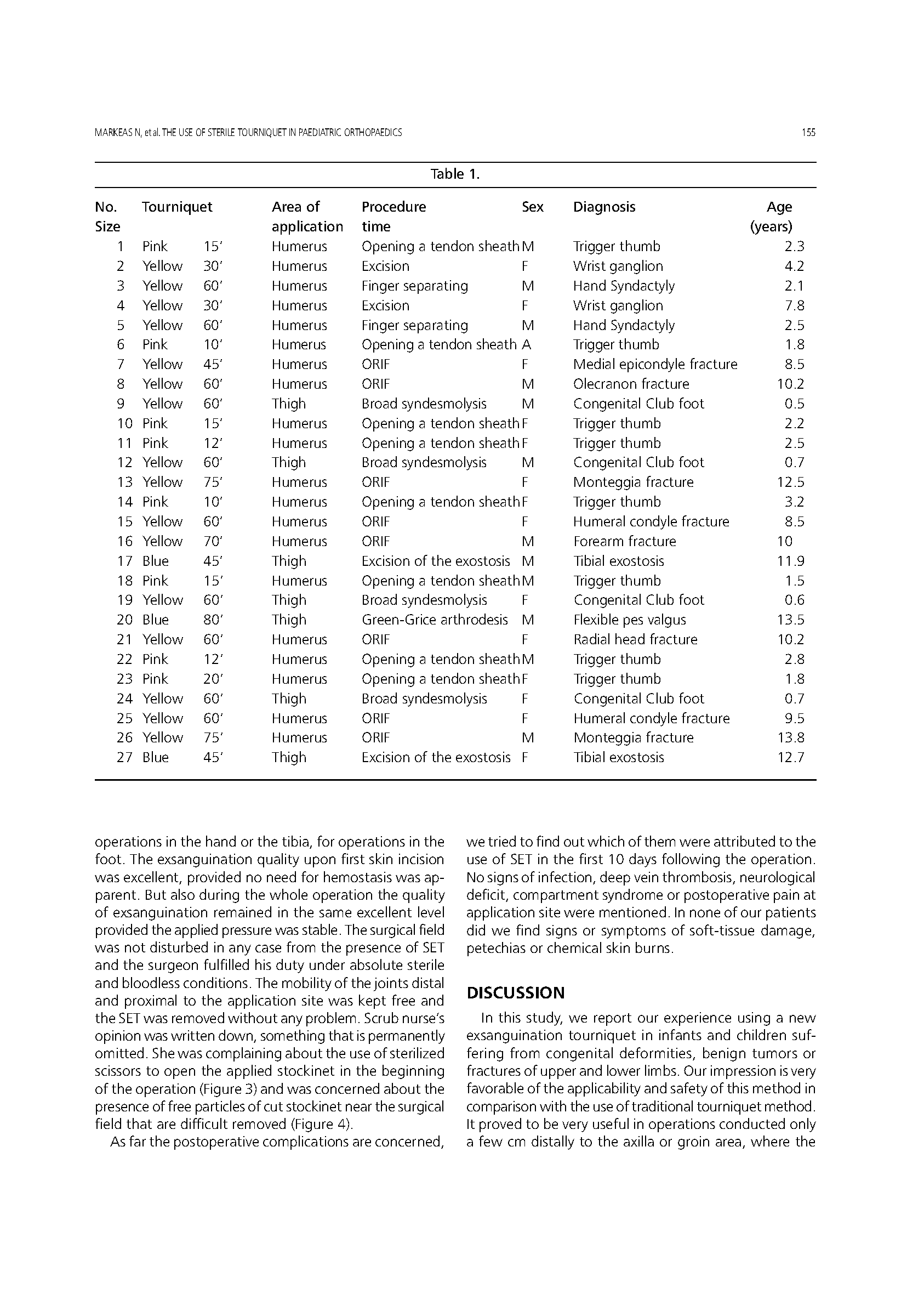 从2007年10月到2008年4月,此装置在我院40名(23名男孩17名女孩)平均年龄为5.6岁(6个月到14岁)的儿童中使用。23例手术设计上肢,23例手术设计下肢。根据特殊标准对这种止血带手术过程和术后的有效性进行评估,并与气囊止血带比较。