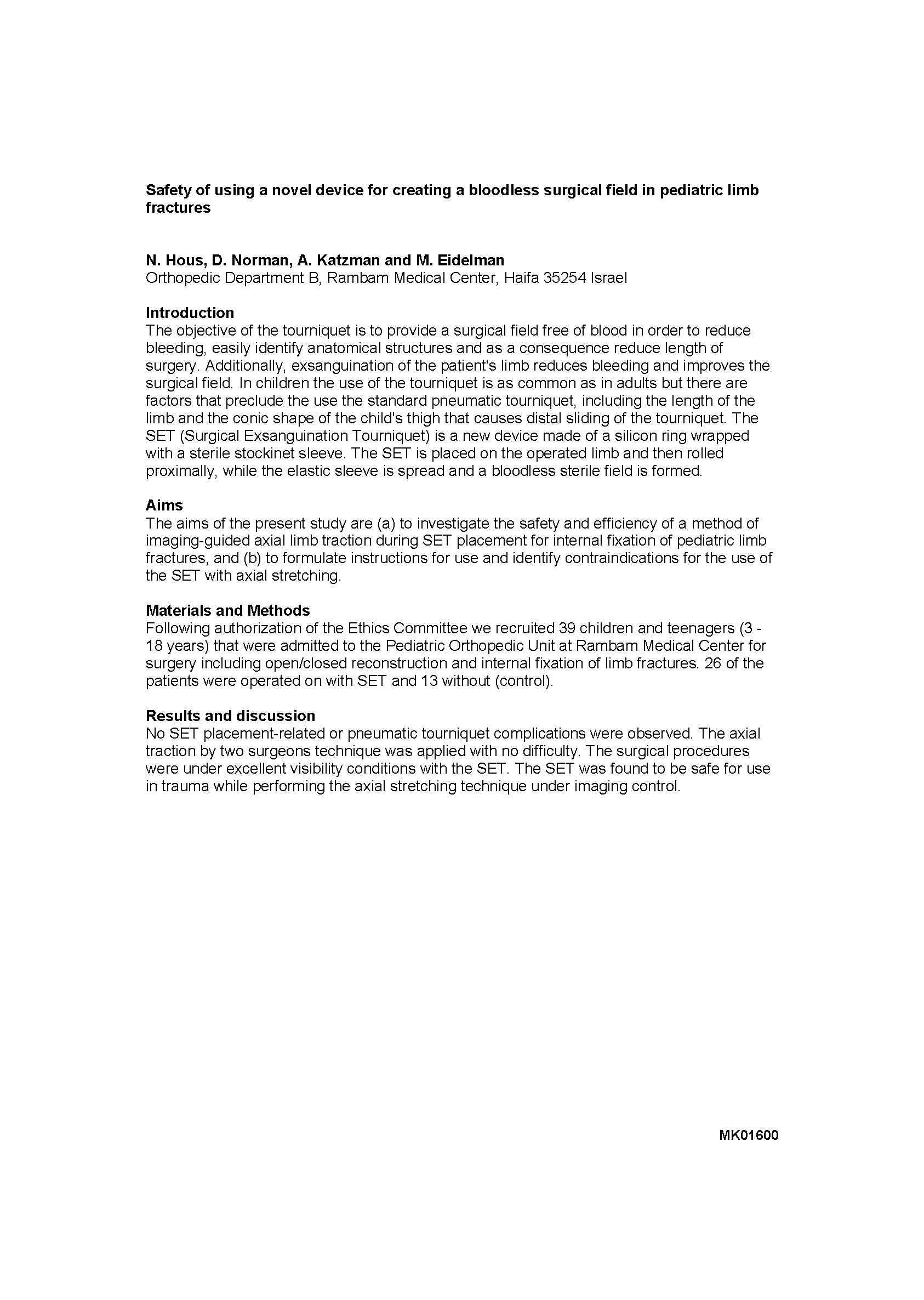 【小儿骨科】在小儿肢体骨折中使用新型的装置来达到无血术野是安全的