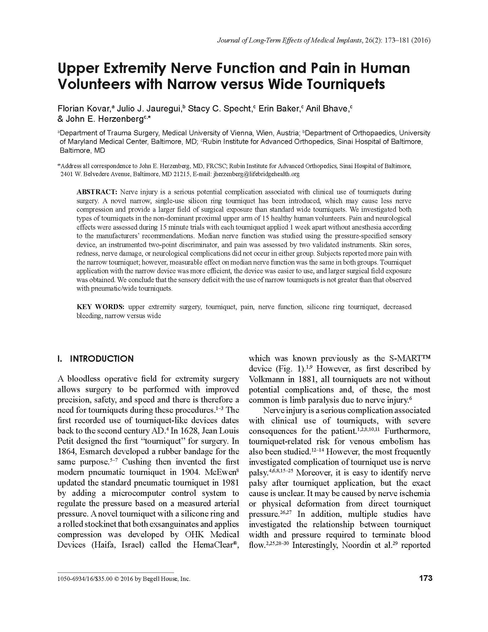 【生理学和生物学】Upper Extremity Never Function and Pain in Human Volunteers with Narrow versus Wide Tourniquets