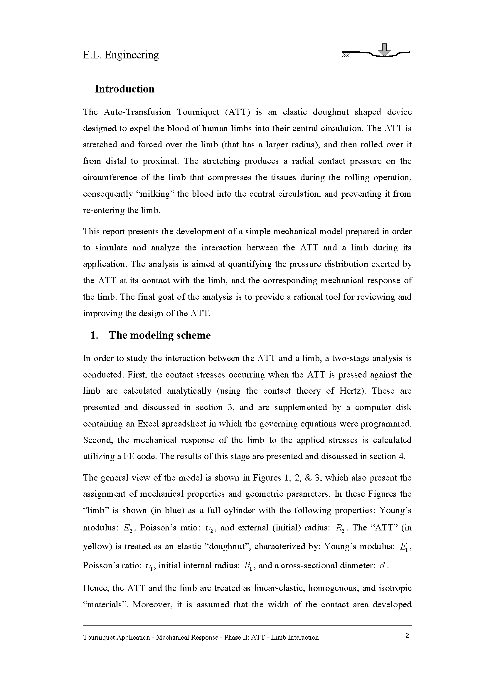 本文为了模拟和分析ATT使用时与肢体间作用力,使用简单机械模型来展示。本分析旨在量化ATT对接触肢体外部的压力分布和相应肢体力学反应。最终是为审查和改善ATT设计提供理性分析。