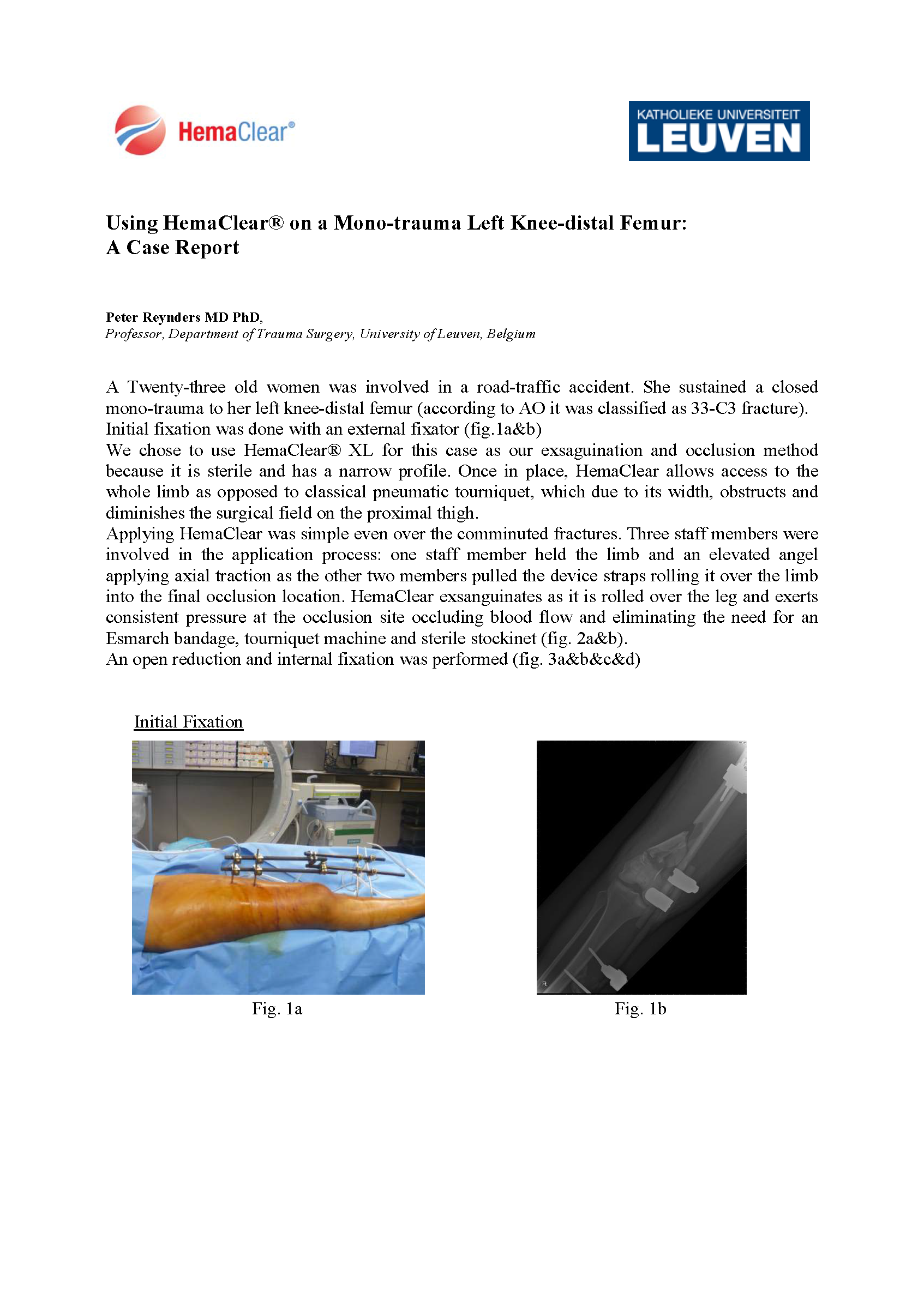 【一般骨科和创伤】在单侧左膝股骨远端创伤中使用HemaClear的一例报道