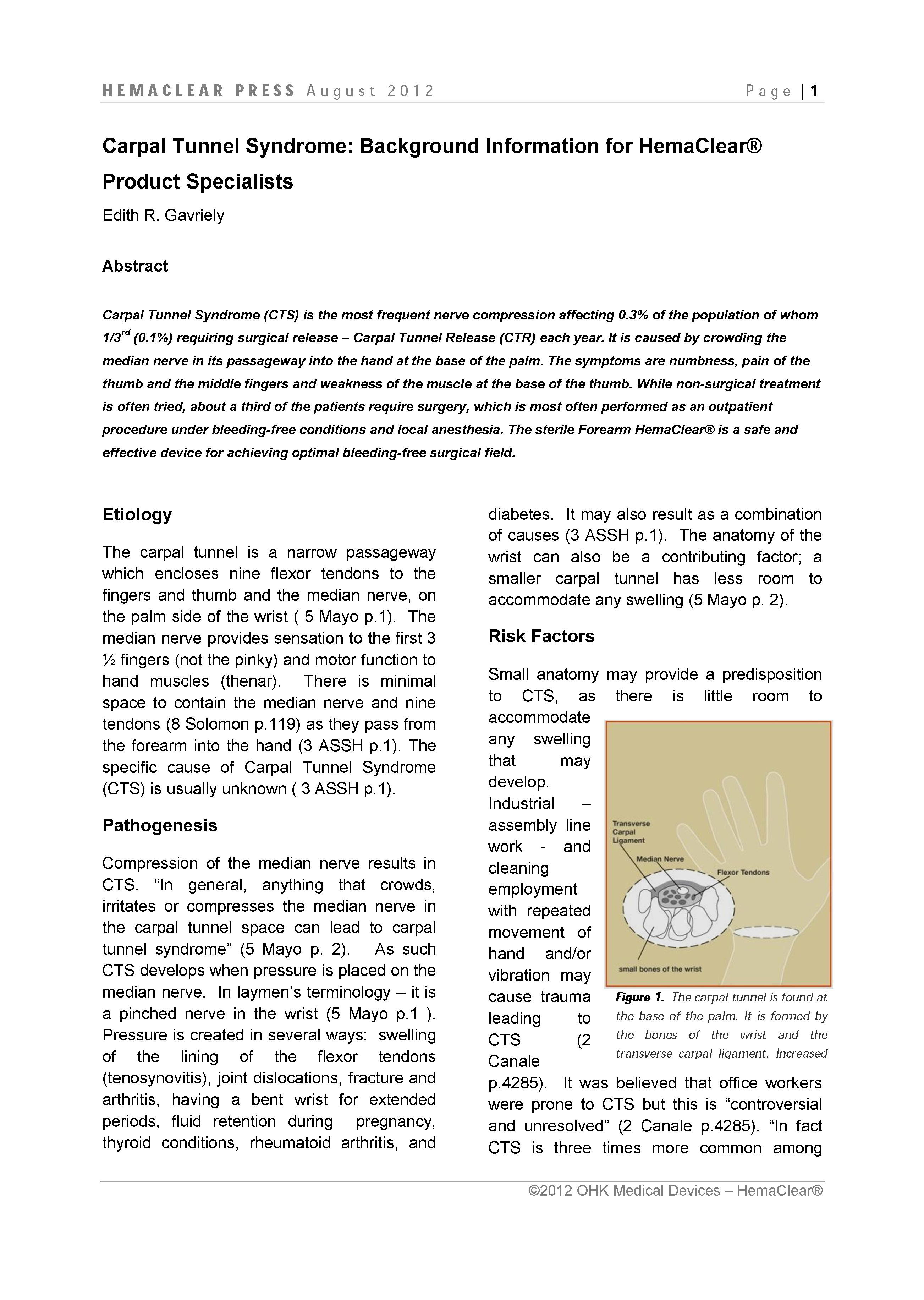 【上肢】腕管综合征:HemaClear的背景资料