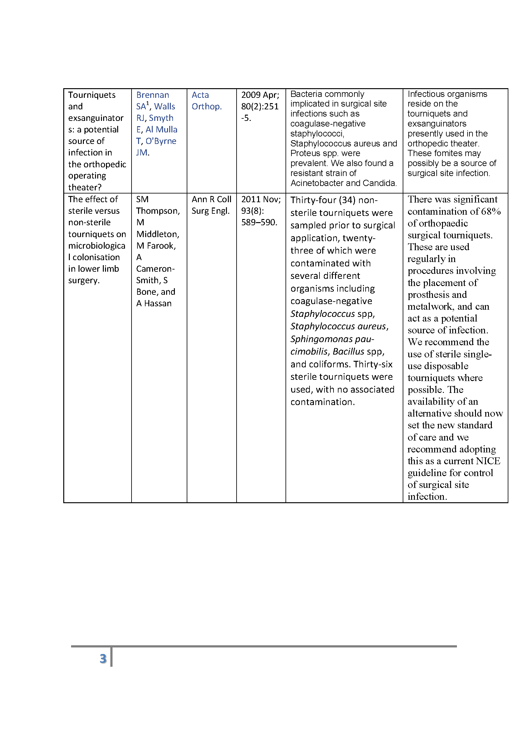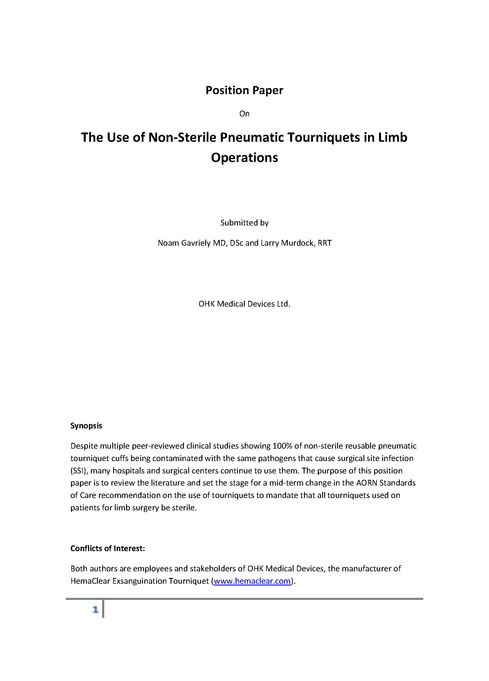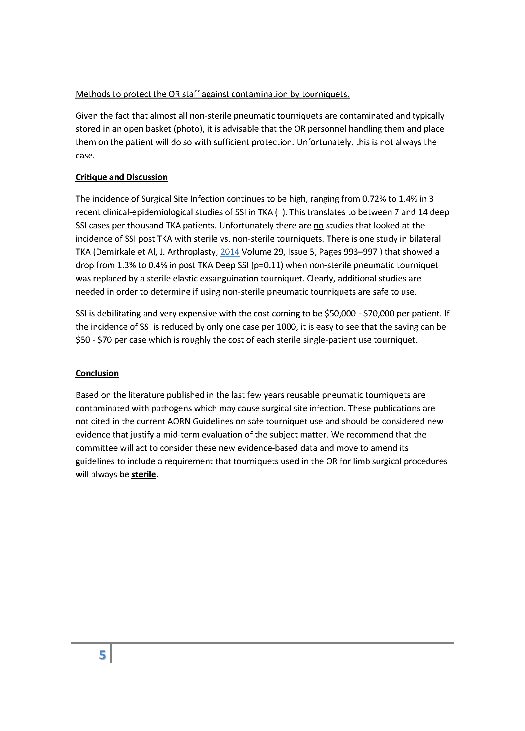 尽管很多专家评审临床研究显示,100%的非无菌循环使用的充气止血带已经被同种的病原体污染从而引起外科手术部位的感染(SSI),但是很多医院和外科临床机构仍然继续使用它。本文的目的是回顾文献,为手术室护士协会推荐使用止血提供标准,外科手术中用于患者肢体的止血带需要是无菌的。