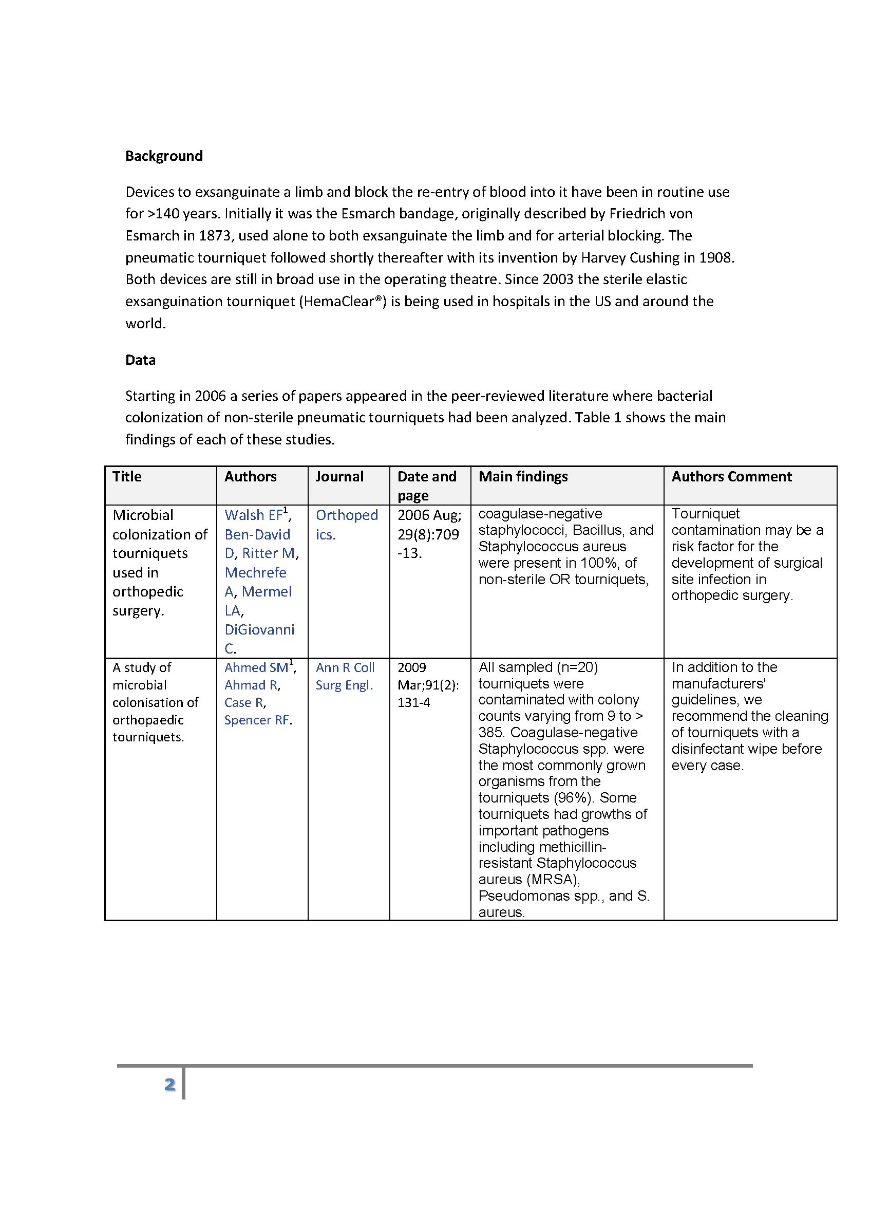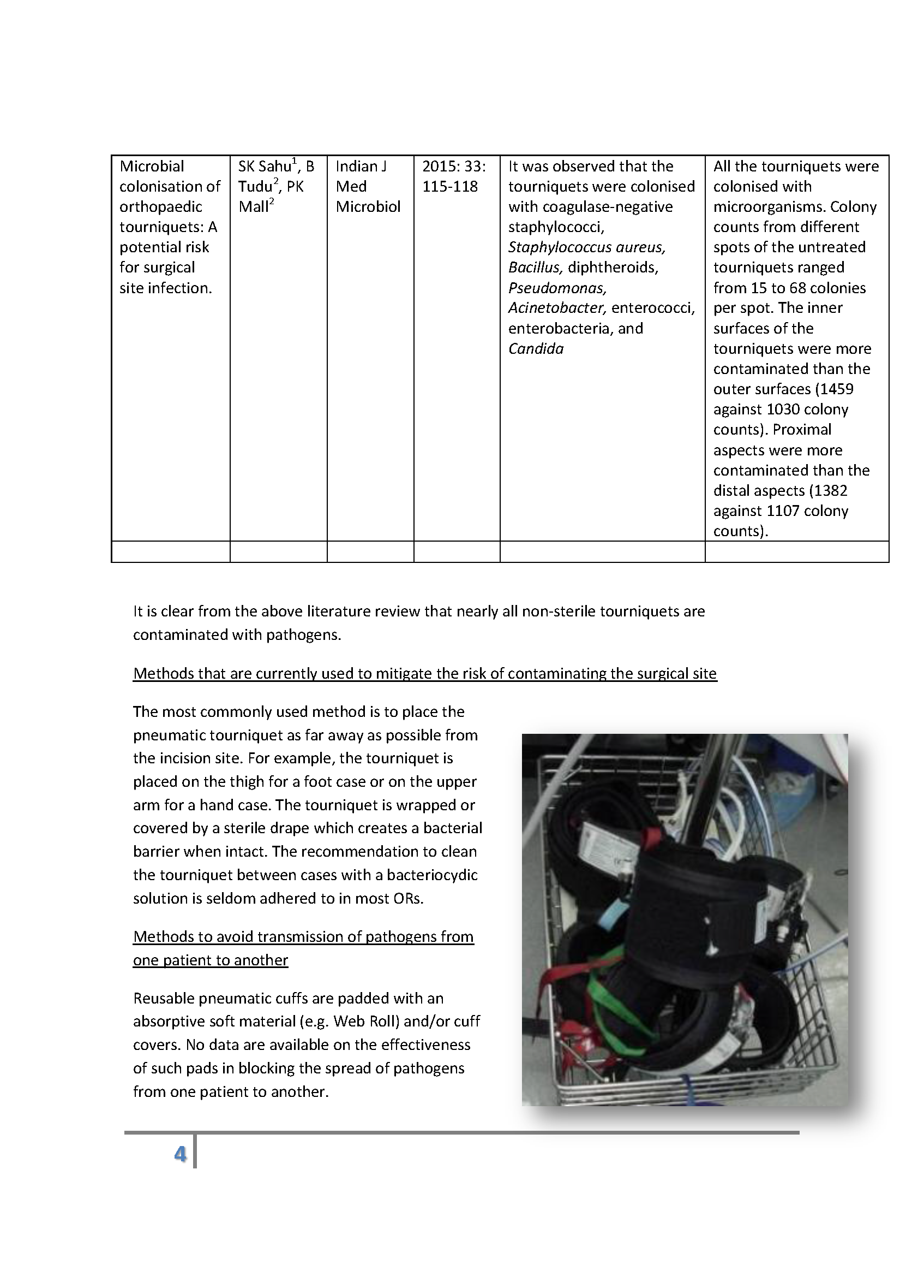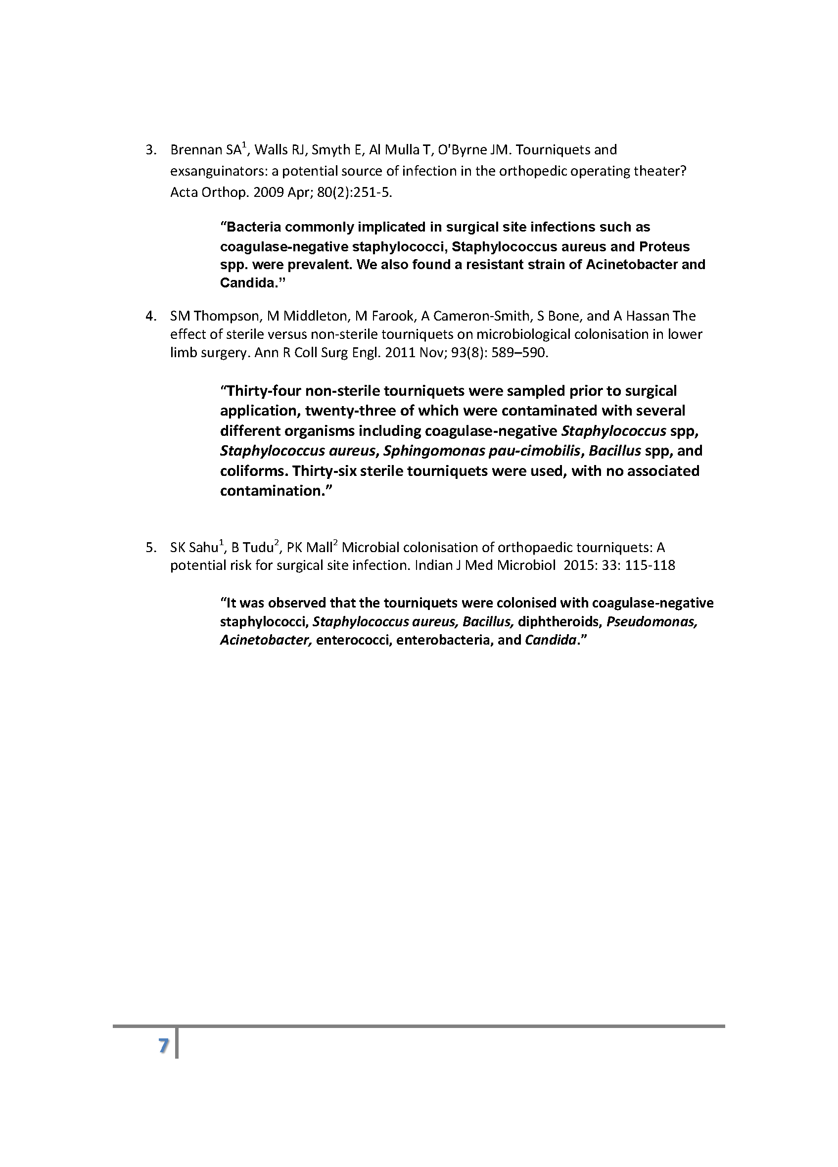 尽管很多专家评审临床研究显示,100%的非无菌循环使用的充气止血带已经被同种的病原体污染从而引起外科手术部位的感染(SSI),但是很多医院和外科临床机构仍然继续使用它。本文的目的是回顾文献,为手术室护士协会推荐使用止血提供标准,外科手术中用于患者肢体的止血带需要是无菌的。