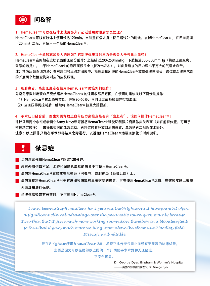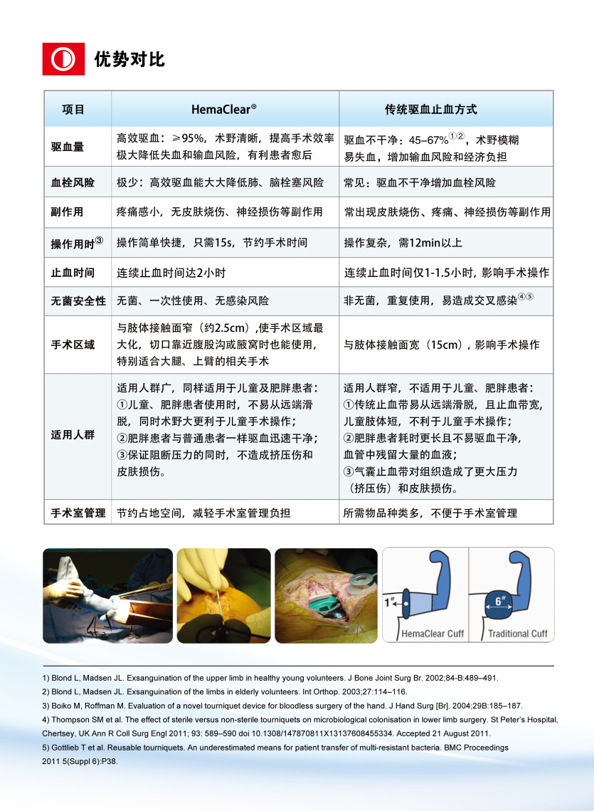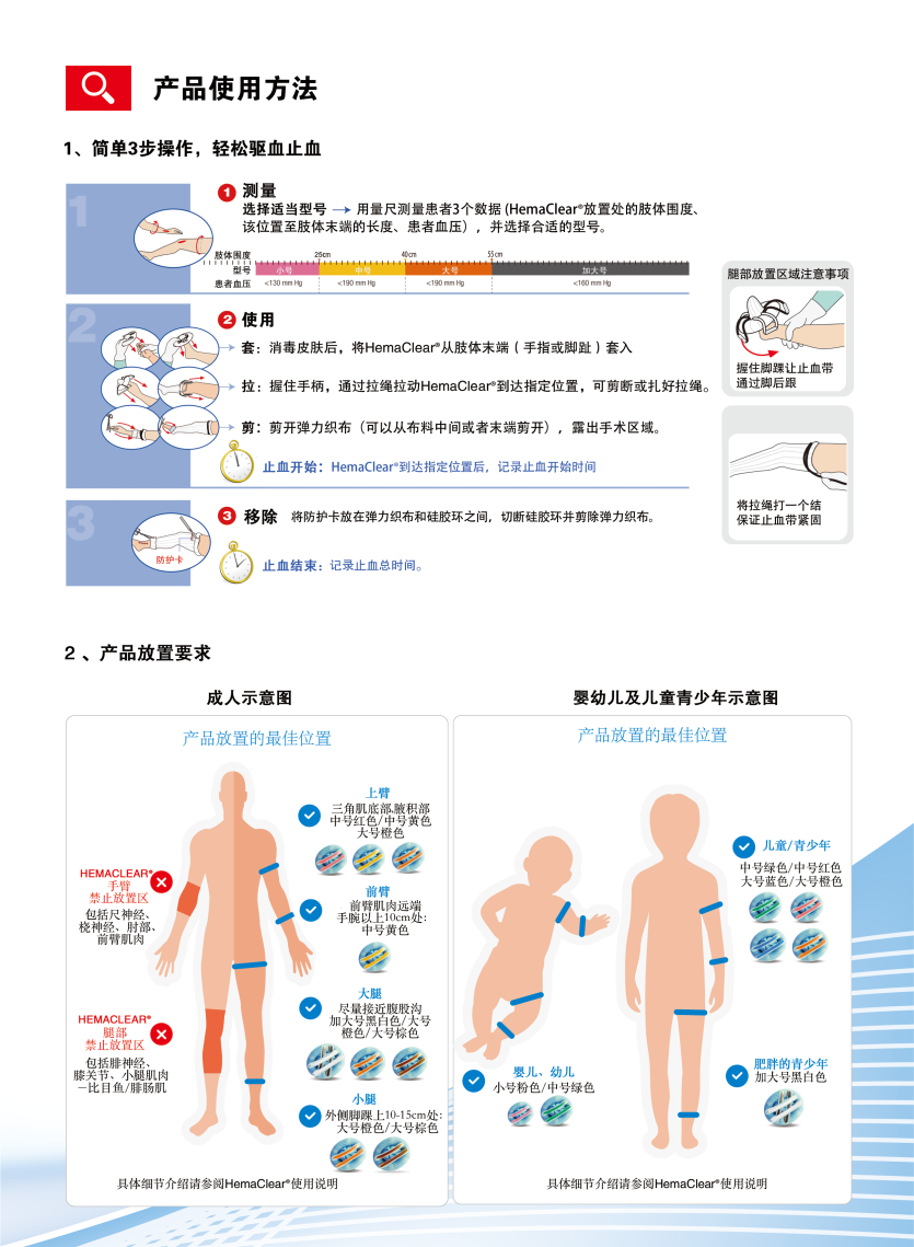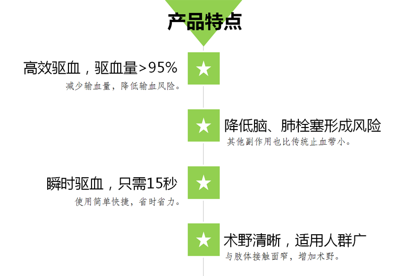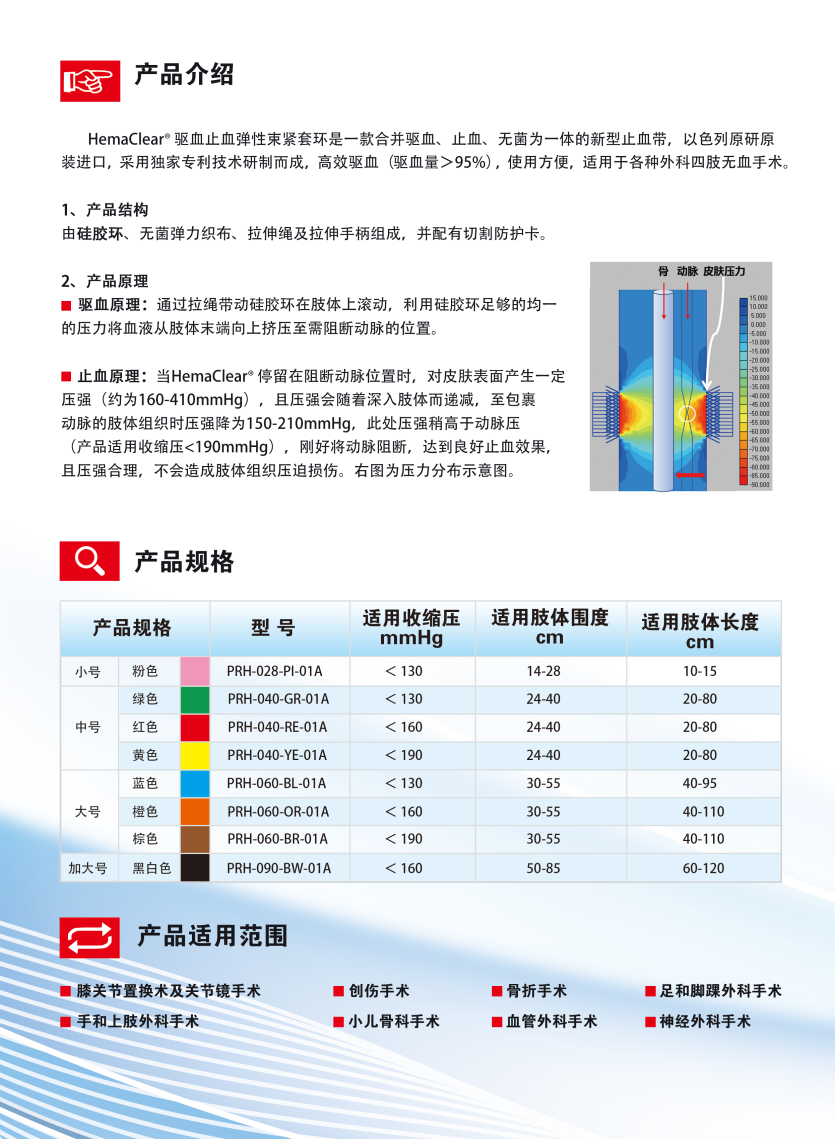 利用弹性环的机械压力驱血止血,适用于四肢外科手术。