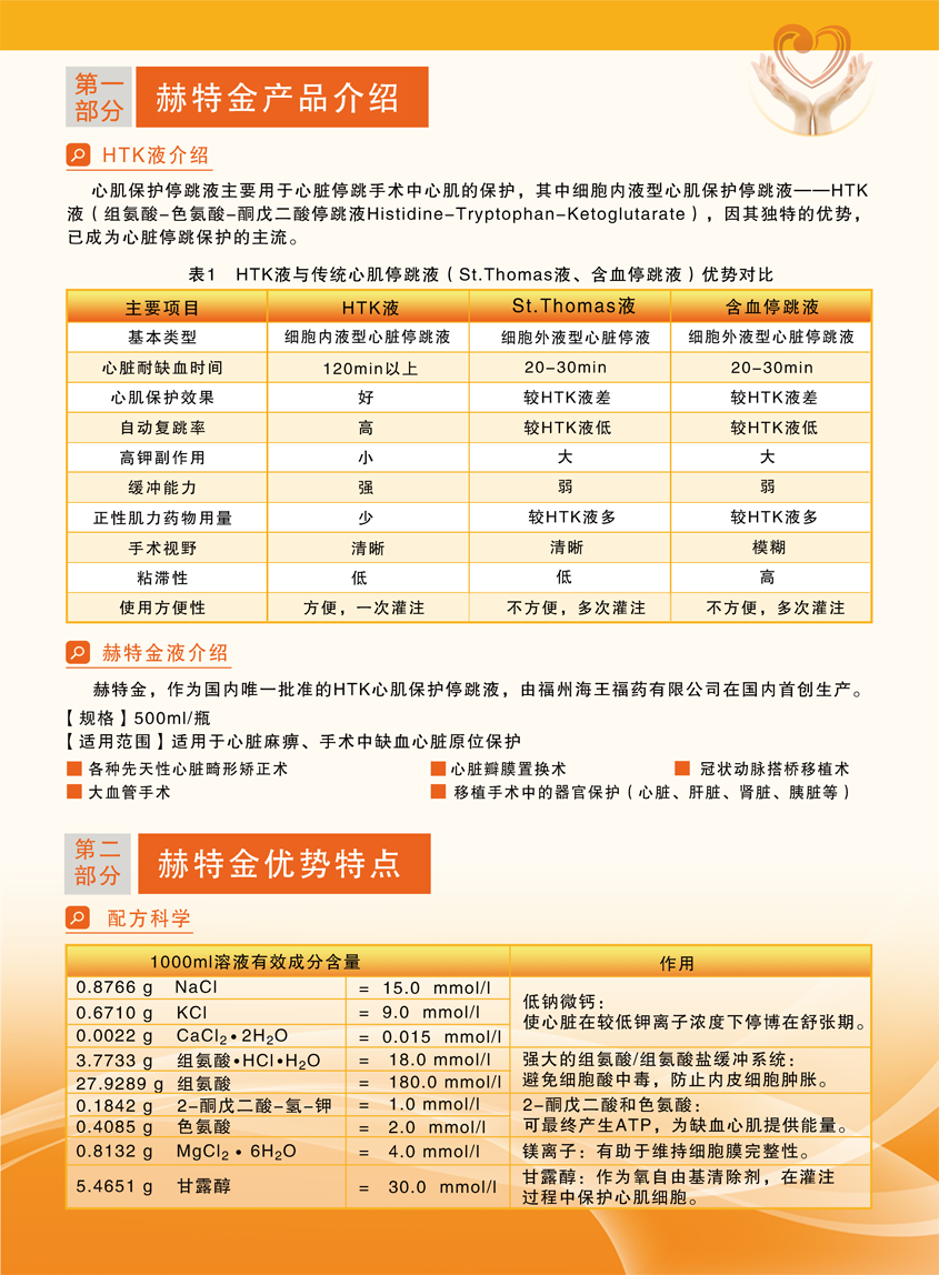 【产品名称】心肌保护停跳液(商品名:赫特金)