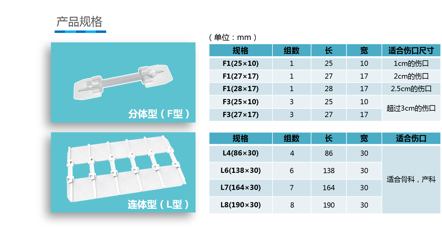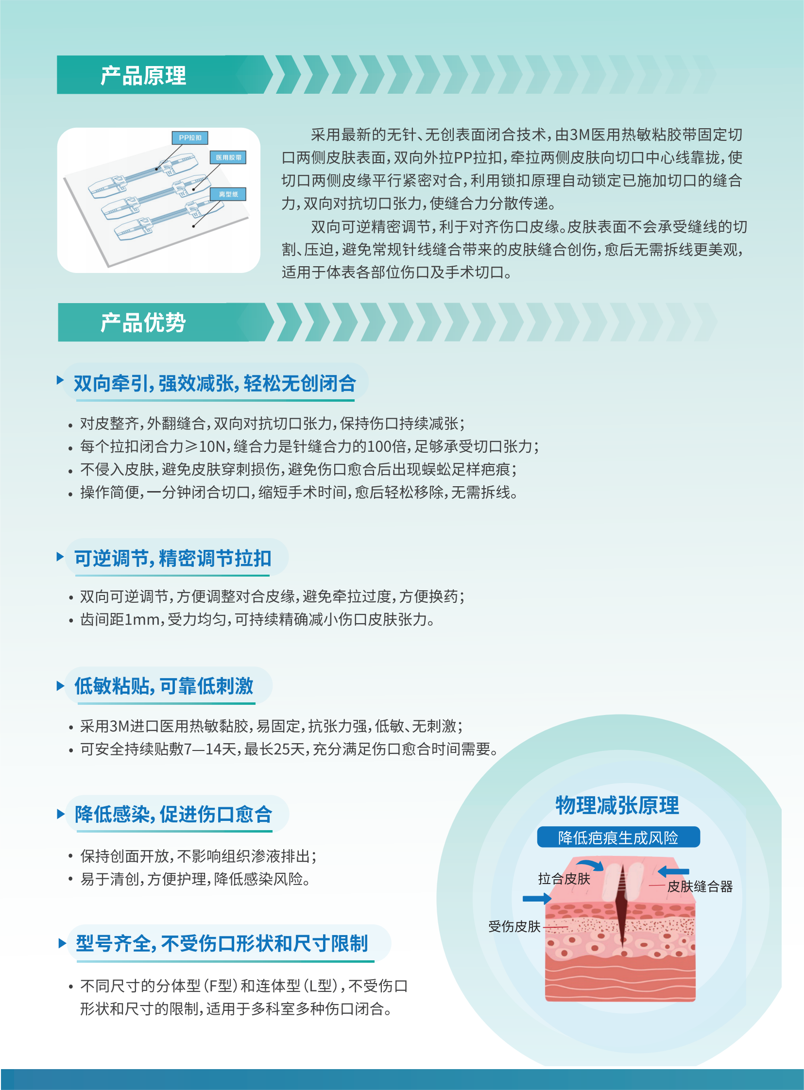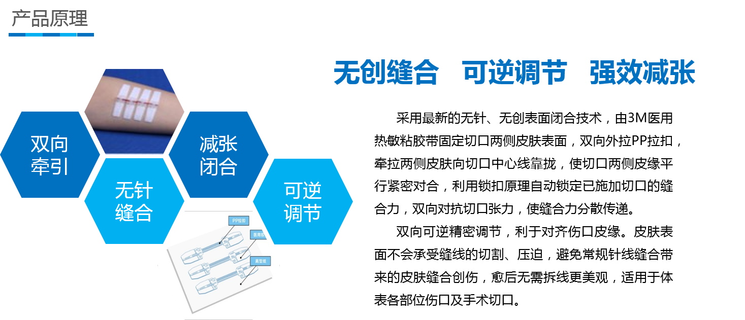 作用:适用于体表各部位伤口及手术切口,使其闭合